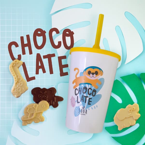 Desenhado para se aproximar ainda mais dos pequenos – cores mais suaves, formas fluídas e divertidas e até com um mascote. Foi inspirada no jupará – mamífero que habita as florestas Amazônica e Mata Atlântica, conhecido por ser o maior dispersor de cacau. Esse animalzinho além de fofo, gera empatia por se alimentar exclusivamente de frutas.